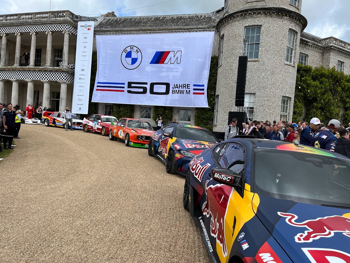 레이스 트랙은 굿우드 페스티벌장의 중앙에 위치해 있다. 아무래도 서킷은 출발점과 도착점이 있기 때문에 페스티벌의 중심을 뚫고 길게 펼쳐져 있다. 곳곳에 있는 스크린으로 어떤 차량이 다가오고 있는지 중계가 되어있고 저 멀리 굿우드 하우스와 올해 BMW M 50주년의 기념 조형물이 보인다.