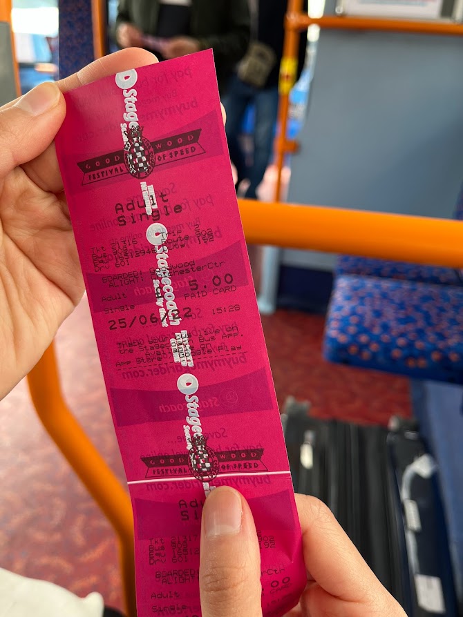나올 떄는 셔틀 버스를 탑승했고 기존에 시내 버스로 운영하던 버스를 조율하여 이 기간에만 셔틀버스로 운영하는 듯 보였다. 그럼에도 버스 영수증도 굿우드가 박혀있어서 기념품 스러운 느낌.