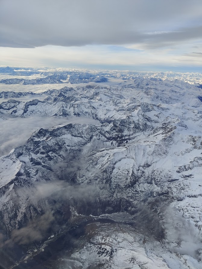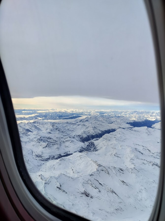 비행기가 이륙하고 거의 10분만에 잠에 든 것 같다. 잠에서 깨어보니 아래는 알프스 산맥들이 보였다. 알프스가 높다는 이야기는 들었지만 이렇게 거대하고 넓은 곳을 실제로 하늘 위에서 내려다보니 정말 웅장했다.