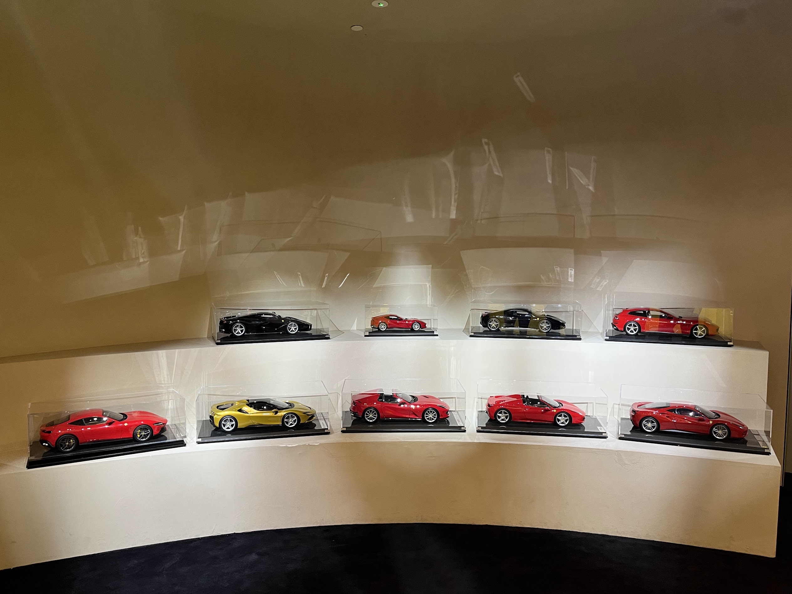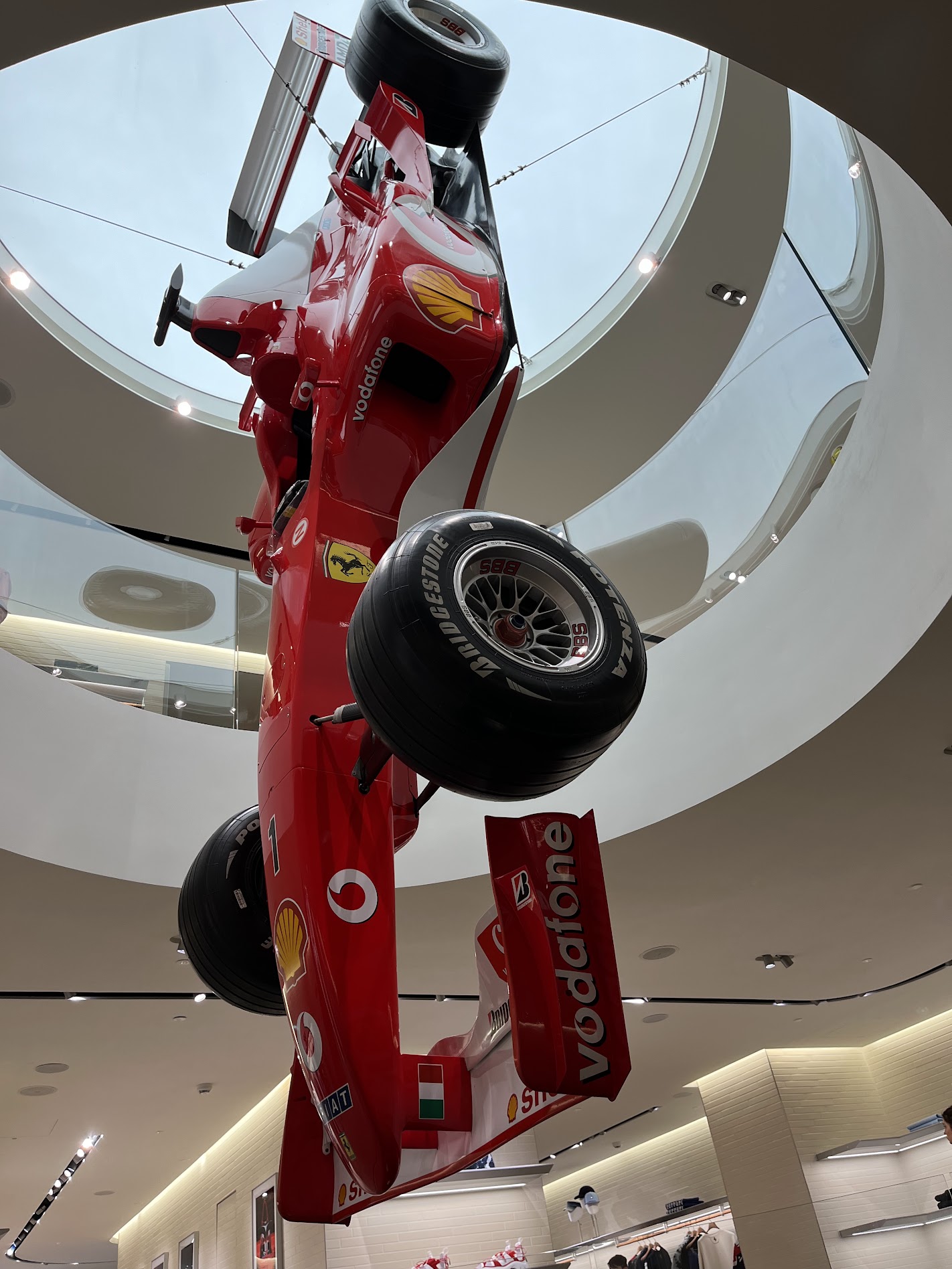 안쪽에는 작정하고 페라리를 럭셔리브랜드로 만들고 싶어 의류나 가방에 심혈을 기울인 것들을 볼 수 있었다. 물론 자동차 모형과 실제 F1에서 사용되었던 스티어링휠이나 스포일러들도 전시도어 있었다.