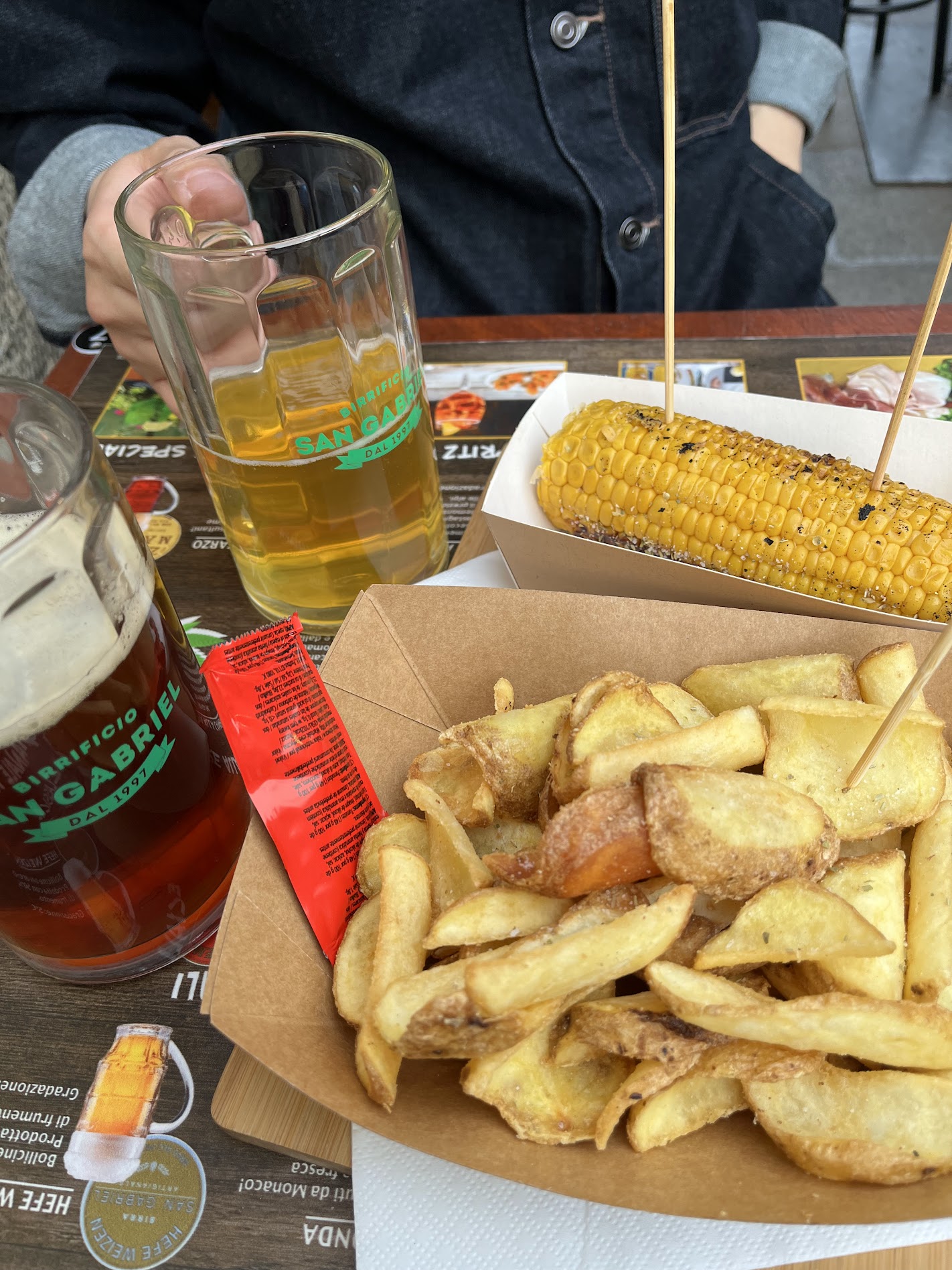 뭔가 목이 말라서 펍 바깥쪽에 앉았는데 저 옥수수는 여자친구가 엄청 좋아했다. 저 운하 옆에서 마시는 것치고 가성비가 나쁘지 않았던 것 처럼 느껴지지만 일반적으로 펍에서 맥주마실 때 금액을 생각하면 그리 싼것도 아니긴하다. 하지만 아주 만족했던 기억.