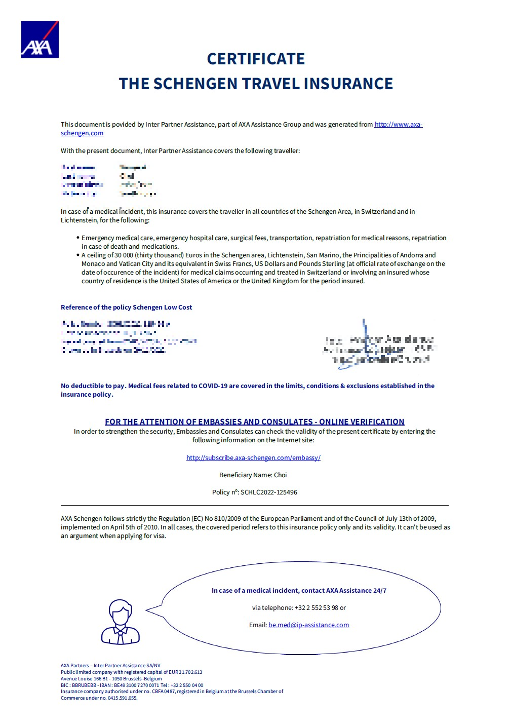 나는 AXA의 30,000유로까지 커버해주는 여행자 보험을 도착일로부터 15일 가량 들어놨다.