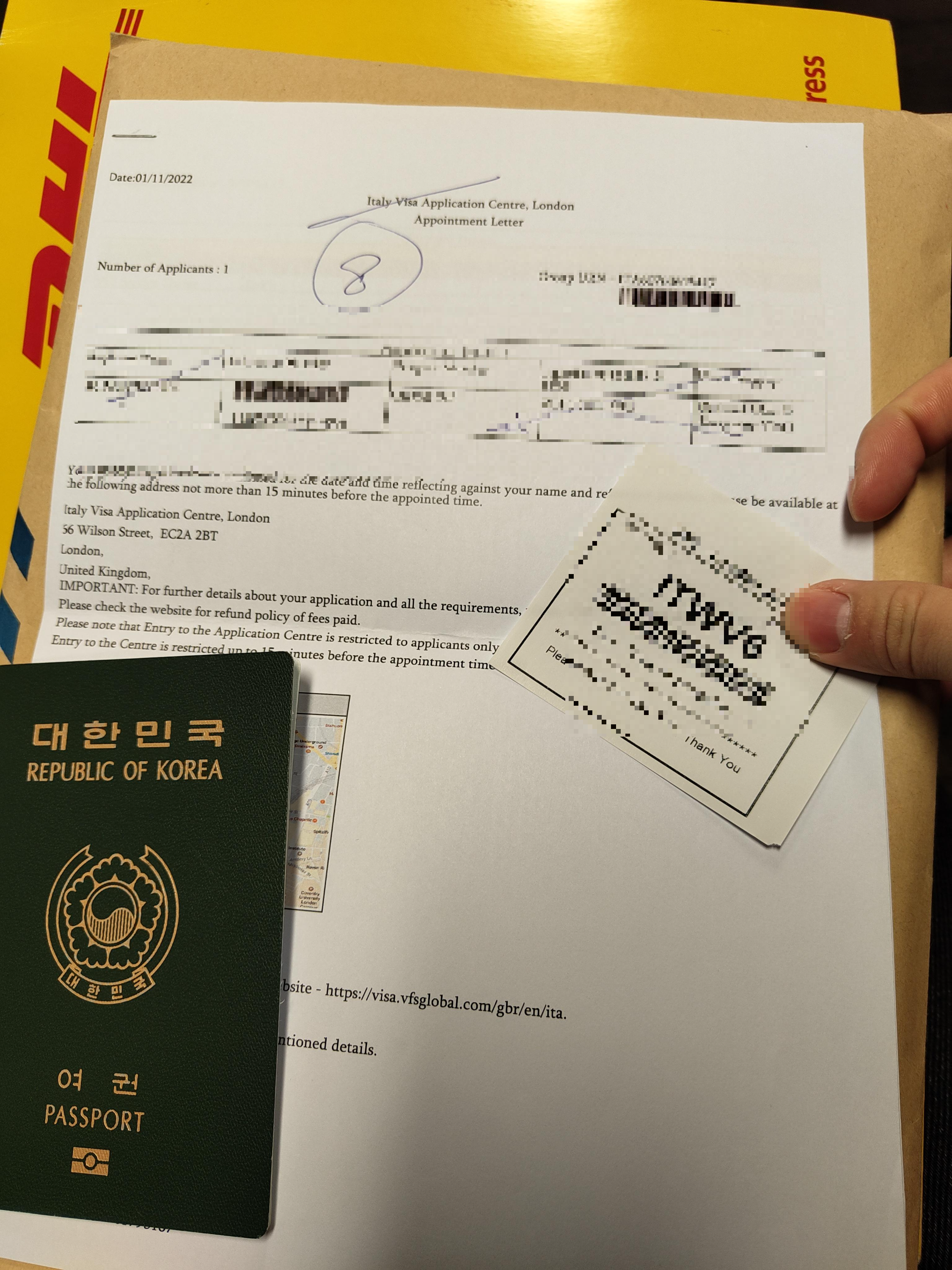 그래서 주 런던 이탈리아 대사관을 통해 비자를 신청하게 되었다.