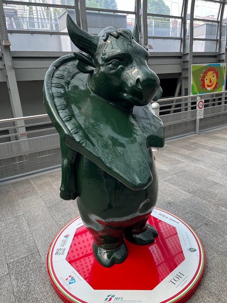 나는 토리노의 저 황소마스코트를 좋아한다. 원래는 저렇게 음수대에 황소머리가 있는것을 마스코트화 한 것 같은데 너무 어이없고 귀엽다. 아무튼 저 황소를 보게된 것은 몬깔리에리에 가기위해 포르따 수자역에 가서 본 것.