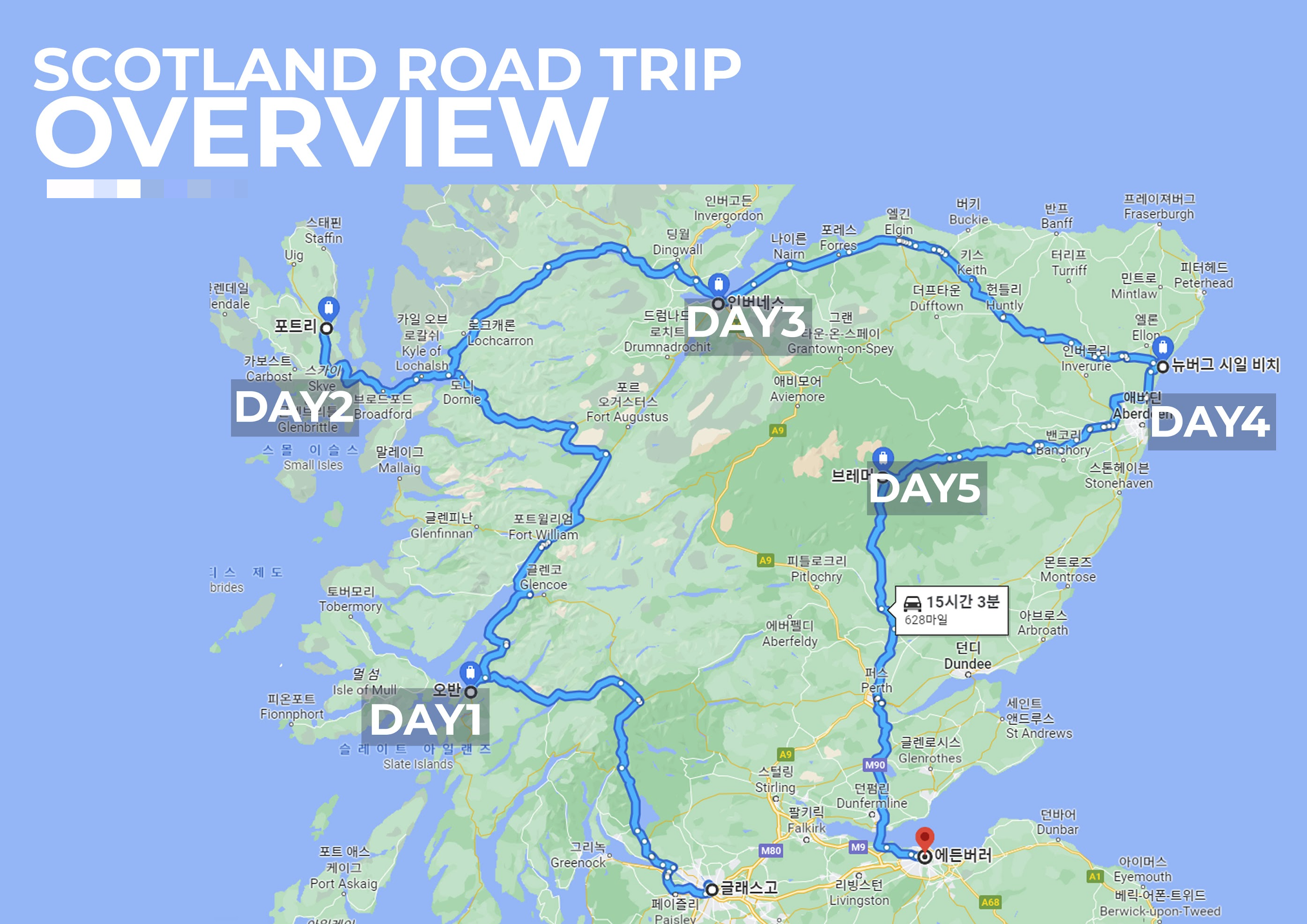 영국을 이제는 올 일이 별로 없을 것 같은데 유학생활 4년동안 한번도 스코틀랜드를 가본 적이 없었기에 이번 기회에 스코틀랜드 로드트립을 해보는 건 어떨까 여자친구와 이야기해서 계획하게 되었다. 아무래도 자연경관이 유명한 스코틀랜드이다보니 글래스고나 에딘버러만 다녀오는 건 아쉬울 것 같고 차를 빌려 로드트립으로 계획했다.