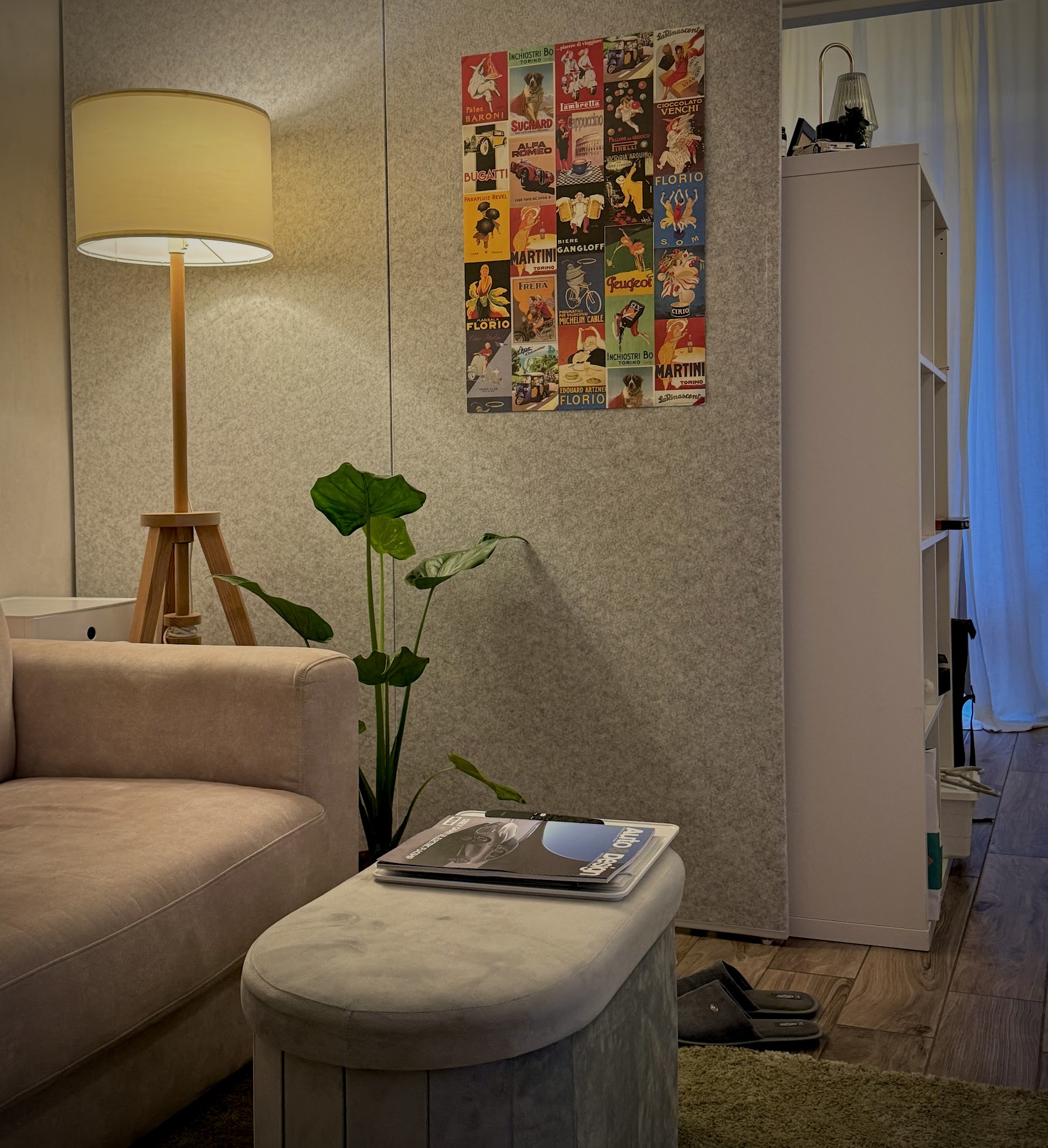 롤러는 친구한테 빌리고 페인트랑 플라스틱 판떼기와 마스킹테이프를 사서 발랐다. 수성 페인트라 냄새가 정말 안나서 굉장히 만족스러움. 프로젝터를 할 생각으로 프로젝터 크기만큼의 높이만 페인트칠을 했는데 꽤 만족스러움.