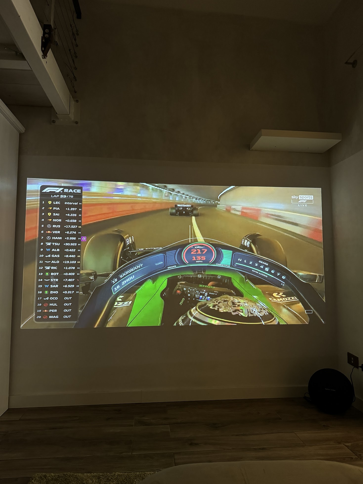 모나코 그랑프리 르클레르의 역사적인 우승장면을 라이브로 봤다. 프로젝터는 아주 만족함. 애초에 집에 햇빛이 부엌쪽으로 들어오기도 하고 이 방 창문쪽에는 파티션으로 나뉘어지기도 해서 프로젝터를 쓰기에 딱 좋은듯.