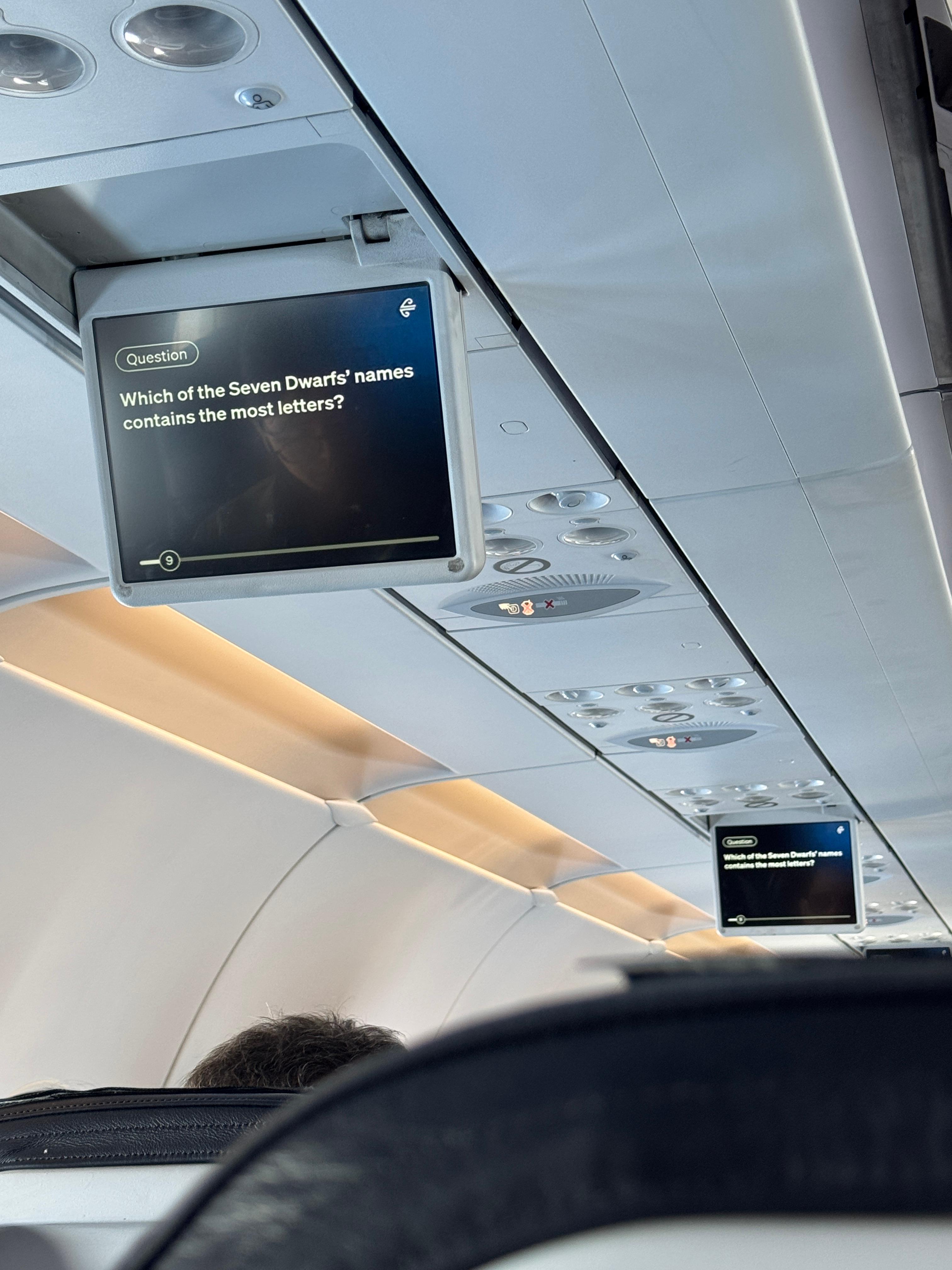 비행 내내 퀴즈가 나오길래 저거보고 퀴즈만 맞추다가 착륙했다. 신기한건 한국에 관한 퀴즈가 네다섯개 나왔다는 점.
