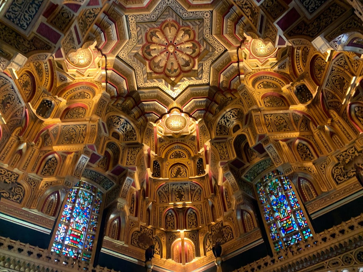성 내부를 먼저 둘러봤는데 잉글랜드의 으리으리한 성들과 비교를 하자면 카디프 카슬의 장식들은 비싼 재료들을 가져다 쓴 느낌은 덜했지만 특유의 형태적 화려함으로 눈길을 끌었다. 특히 마지막 사진이 Arab Room의 천장도. 이름에서 알 수 있듯이 카디프 성에는 다양한 문화가 섞여 재창출된 카디프 만의 느낌을 가지고 있어서 잉글랜드와는 다른 아름다움이 깃들어져 있는 것 같았다.